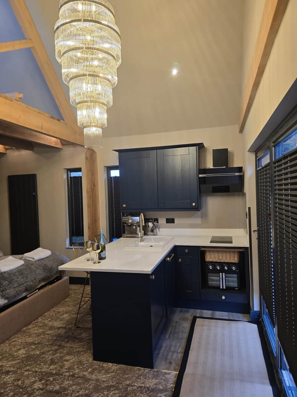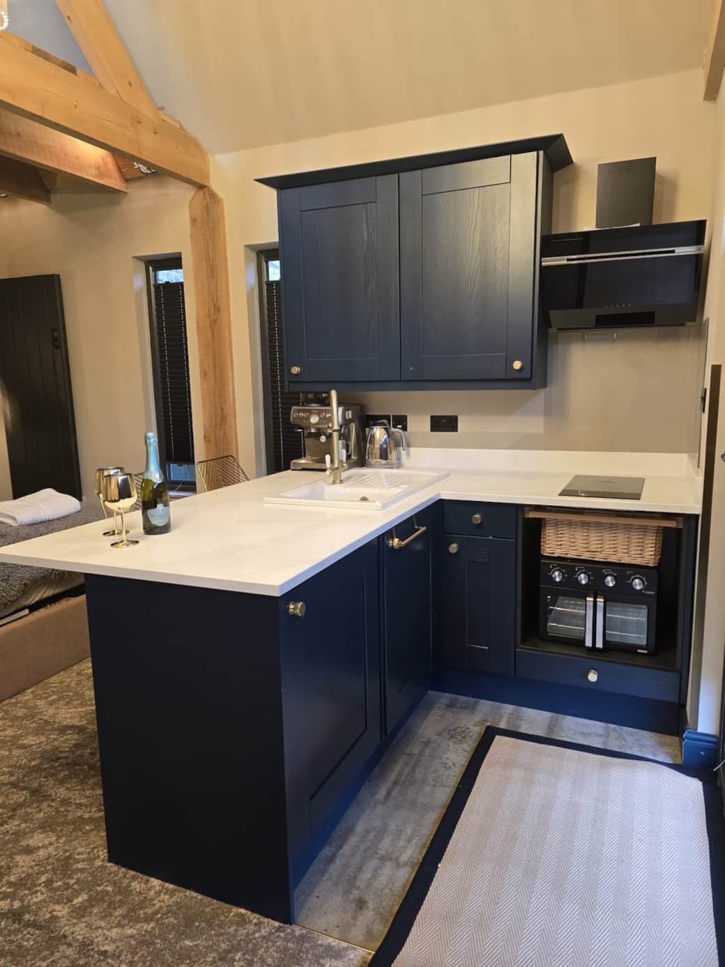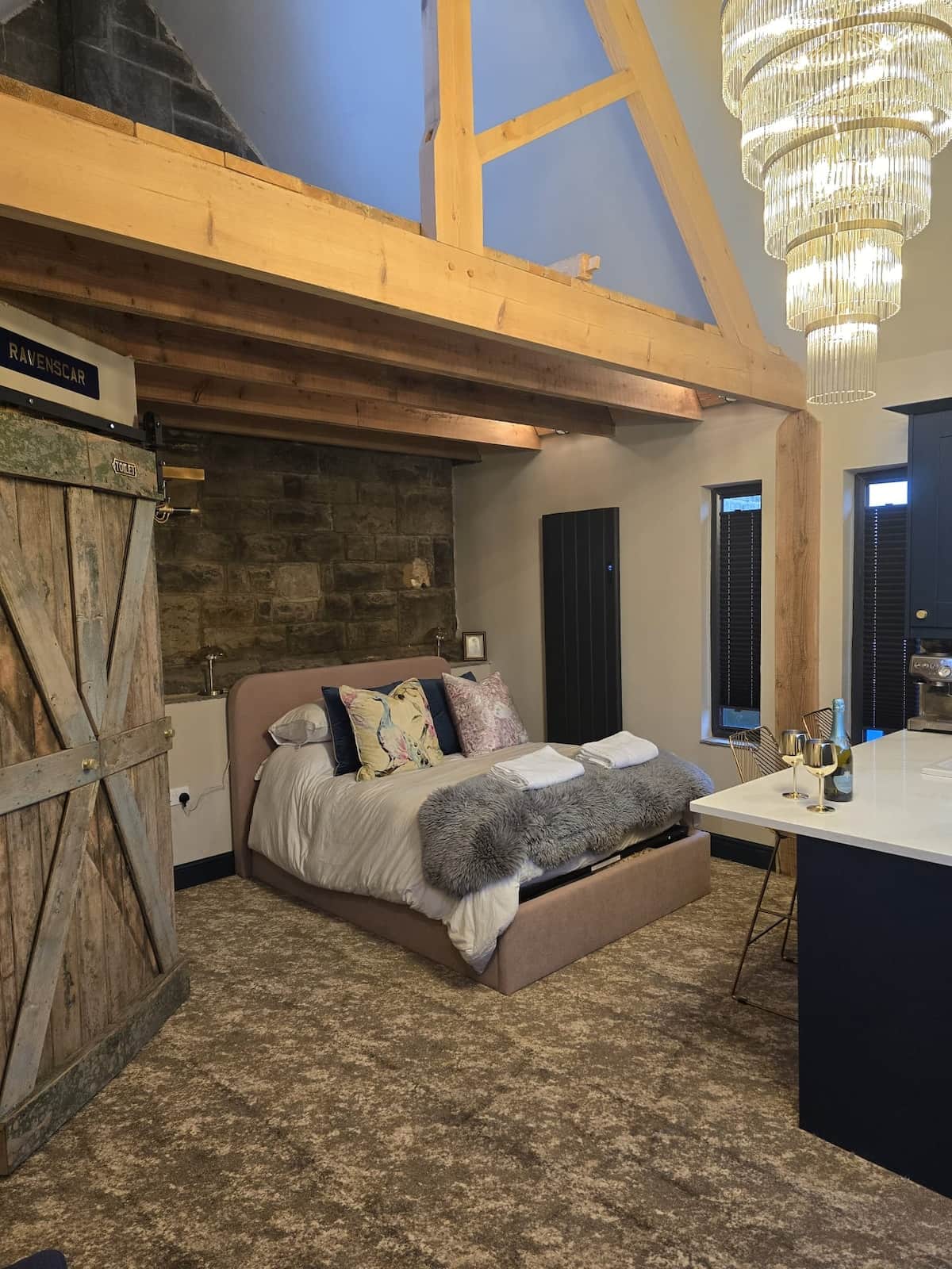 Newly renovated to an exceptional standard, Churchside Loft blends historic character with modern luxury. Exposed Victorian stone, vaulted ceilings and timber beams create a striking backdrop to sleek quartz worktops, deep navy cabinetry and a contemporary rainfall shower. Thoughtfully designed with boutique touches throughout, it offers a cosy yet sophisticated coastal retreat in the peaceful village of Ravenscar — perfect for switching off in style.